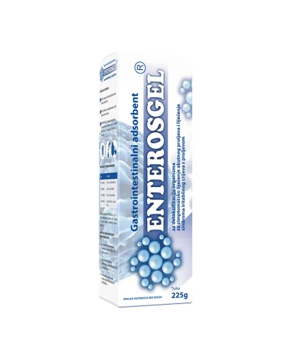 Enterosgel je suspenzija koja uklanja štetne tvari, egzogene i endogene toksine, patogene bakterije i viruse iz organizma. Štiti crijevnu sluznicu od kemijskih i mehaničkih povreda, ubrzava njezinu regeneraciju i normalizira razinu sekrecije imunoglobulina, a pospješuje obnavljanje normalne mikroflore, ne smanjuje apsorpciju vitamina, minerala i ostalih hranjivih tvari neophodnih za organizam.