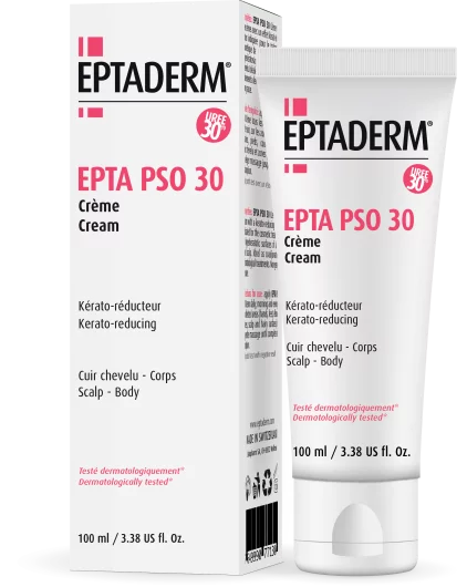 EPTA PSO 30 krema intenzivna je njega za kožu sklonu ljuskanju. Gel krema s keratoreducirajućim djelovanjem, namijenjena uporabi kod plakova na koži, vlasištu i svim površinama kože obraslim dlakama.