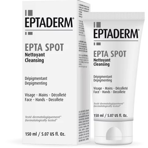 EPTA SPOT gel za čišćenje kozmetička je njega namijenjena čišćenju kože sklone hiperpigmentaciji. Njegova specijalna formula s učinkom posvjetljivanja pruža laganu eksfolijaciju ostavljajući kožu sjajnom, blistavo čistom i pripremljenom za daljnje tretmane depigmentacije.