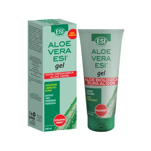 Esi Aloe Vera gel je čisti aloe vera gel koji djeluje umirujuće, obnavlja i hrani kožu u slučajevima iritacija, alergija, opeklina i opekotina, uboda insekata. Obnavlja površinski zaštitni sloj, djeluje protuupalno sprječavajući ožiljke i njegujući kožu.