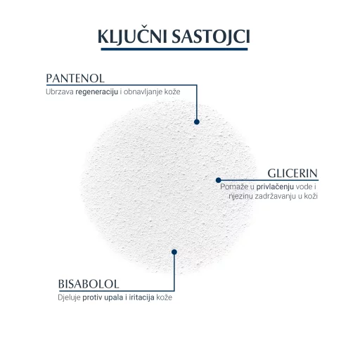Sama formula obogaćena je glicerinom i pantenolom kako bi pomogla koži održati razinu vlage i potaknuti regeneraciju i obnavljanje. Bez konzervansa i mirisa, ova SOS obnavljajuća njega klinički dokazano ublažava simptome vrlo suhe kože. Koža je vidljivo obnovljena i zaštićena.