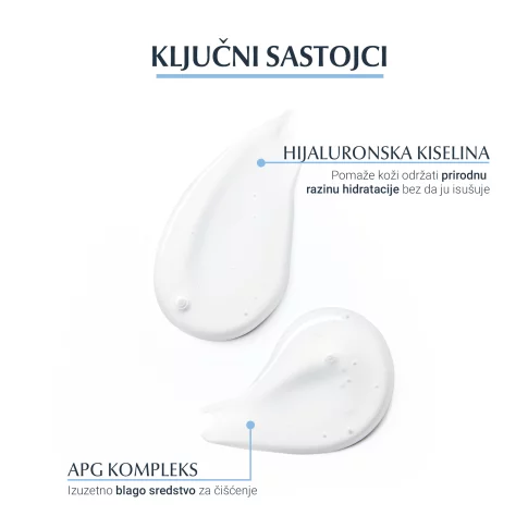 Gel za čišćenje kombinira blag kompleks za čišćenje s hijaluronskom kiselinom i ostalim hidratantnim prirodnim sastojcima kako bi koža održala prirodnu razinu hidratacije. Ostavljaju kožu čistom, mekom i osvježenom.