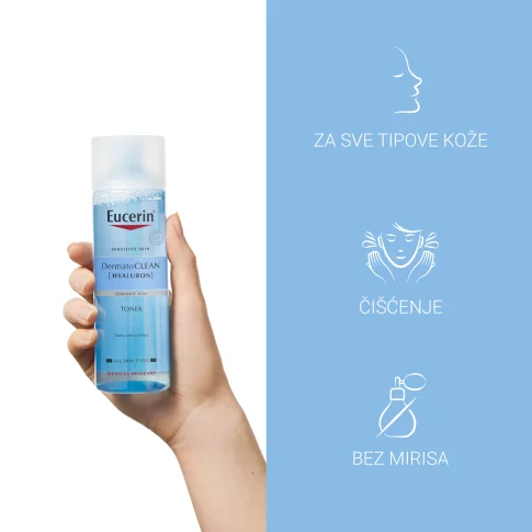 Eucerin DermatoCLEAN [HYALURON] tonik za lice idealan je za sve tipove kože, a klinički i dermatološki dokazano pogodan je i za osjetljivu kožu.