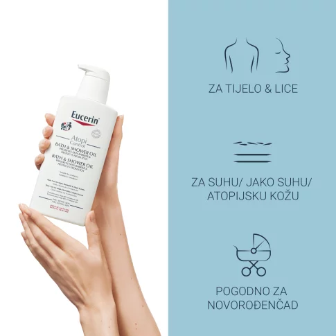 Eucerin AtopiControl ulje za pranje nježno čisti i umiruje atopičnu kožu, ublažava svrbež i sprječava daljnje isušivanje. Koristiti svakodnevno, tijekom akutne faze kao i faze bez simptoma.