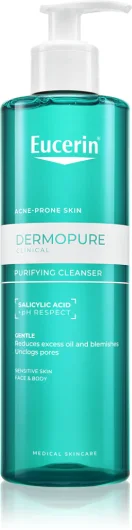 Eucerin Dermopure gel za čišćenje lica nježno uklanja višak sebuma i nečistoća zahvaljujući blagoj formuli bez sapuna. Prilagođen je osjetljivoj i masnoj koži sklonoj dobivanju akni.