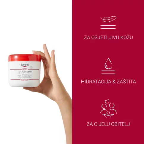 Eucerin pH5 Soft krema za tijelo hranjiva je njega koja kožu čini otpornijom, manje osjetljivom i baršunasto mekom.