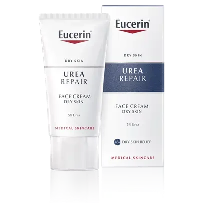 Eucerin UreaRepair krema za lice s 5% ureje lagana je krema za lice za suhu do vrlo suhu kožu, koja trenutno hidratizira kožu i ublažava zategnutost te koža time postaje glatka i podatna.