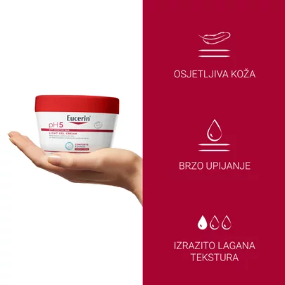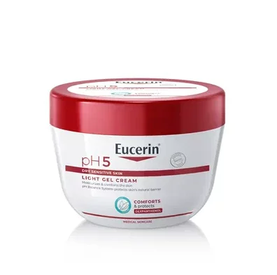Eucerin pH5 lagana gel krema za tijelo štiti i njeguje osjetljivu kožu, ne ostavljajući tragove. Pruža dugotrajnu hidraciju ostavljajući kožu mekom i glatkom na izgled i dodir.