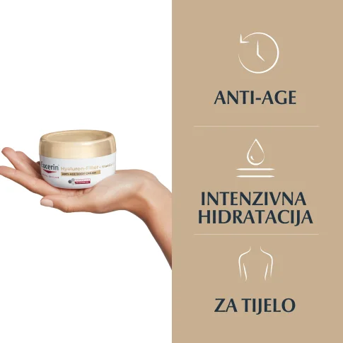 Eucerin Hyaluron-Filler + Elasticity anti-age krema za tijelo anti-age je njega za tijelo koja pruža vidljivo poboljšanje elastičnosti i značajno smanjivanje pojave hiperpigmentacija na koži.