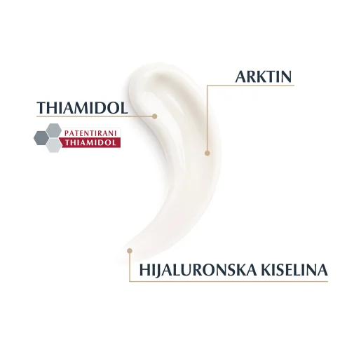 Eucerin Hyaluron-Filler + Elasticity anti-age krema za tijelo svojom inovativnom kombinacijom tri ključna sastojka ciljano djeluje na kožu s trostrukim učinkom, ostavljajući kožu ujednačenom, čvršćom, pomlađenom te glatkom na dodir. Eucerinov patentirani sastojak thiamidol smanjuje pojavu hiperpigmentacija te čini kožu ujednačenom i mlađom. Arktin potiče obnovu kolagena, pomaže u poboljšanju elastičnosti, te djeluje zajedno sa hijaluronskom kiselinom koja osigurava intenzivnu hidrataciju i glatku kožu.