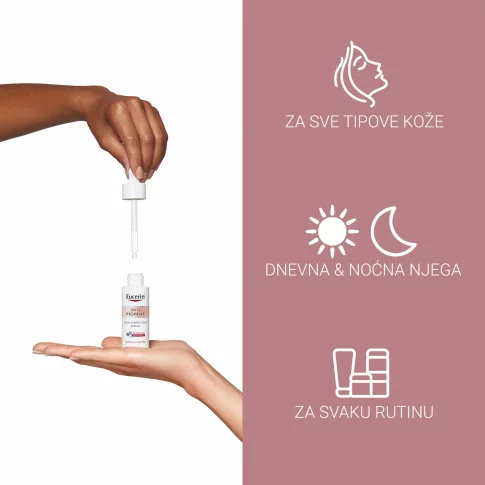 Eucerin Anti-Pigment Skin Perfecting Serum spaja snažne aktivne sastojke koji na različite načine utječu na blistavost vaše kože te smanjuju hiperpigmentaciju u samom izvoru: