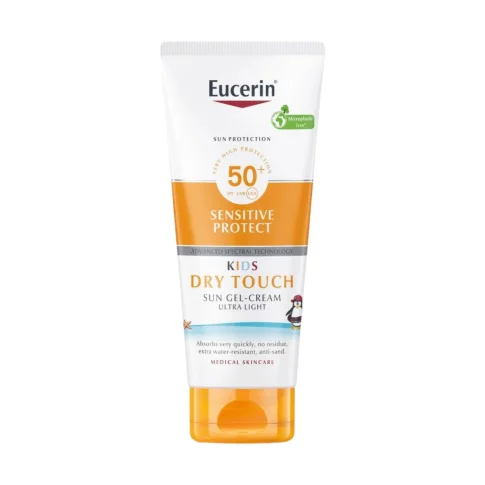 Eucerin Sensitive Protect Kids Dry Touch Sun Gel-Krema SPF50+ brzo je upijajuća, ultra lagana zaštita sa SPF 50+ pogodna za osjetljivu dječju kožu.