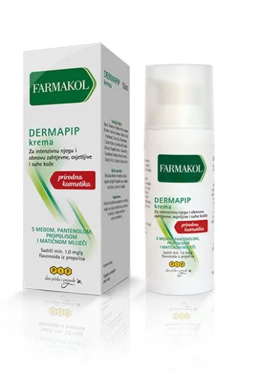 Farmakol Dermapip krema koristi se za intenzivnu njegu i obnovu zahtjevne, osjetljive i upaljene kože. Vlaži suhu kožu i potiče zacjeljivanje oštećene kože, smiruje crvenilo i upaljenost, te usporava starenje kože.