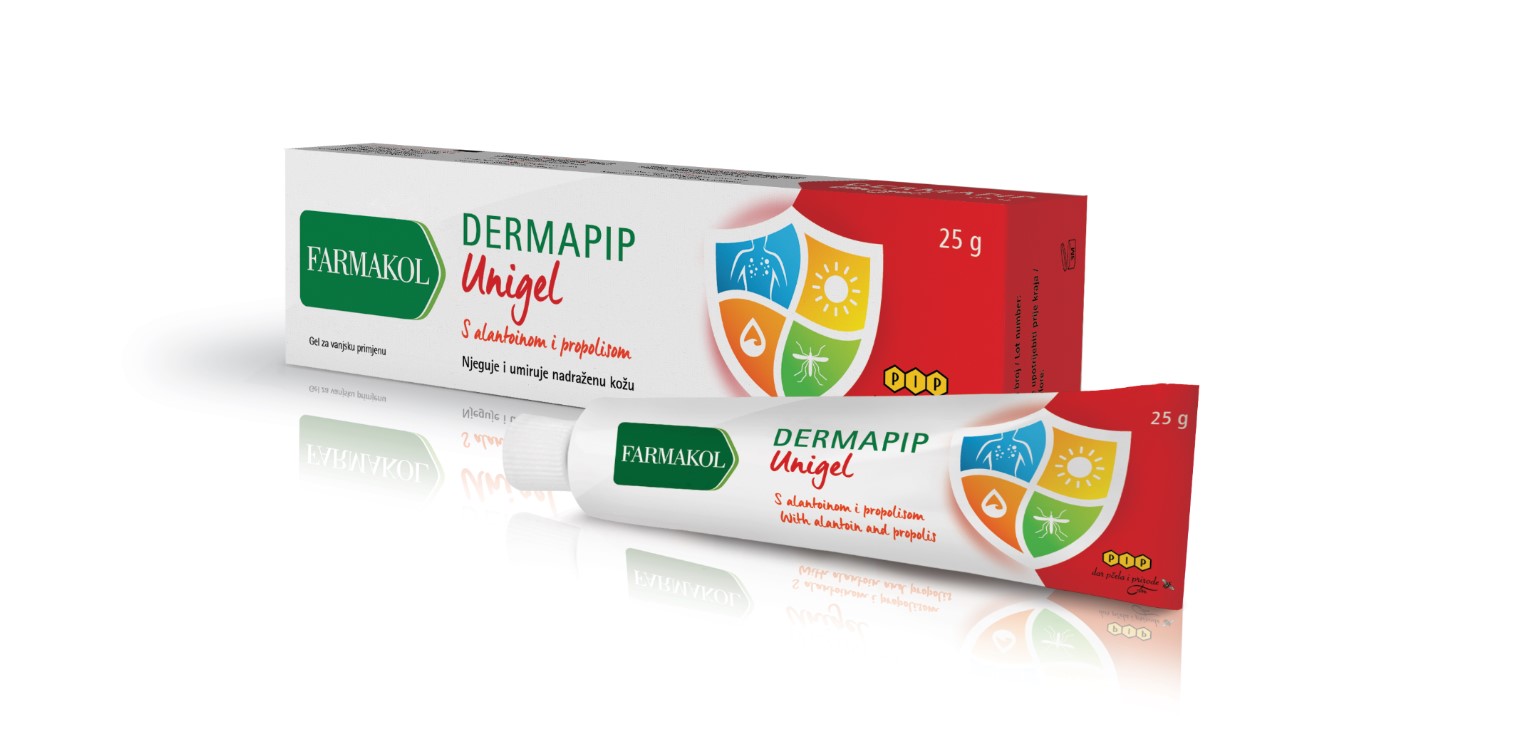 Gel s alantoinom, propolisom, ekstraktom kamilice i nevena potiče obnovu kože, umiruje i njeguje kožu, ugodno hladi, brzo se upija, ne masti. Kožu čini mekom i glatkom.