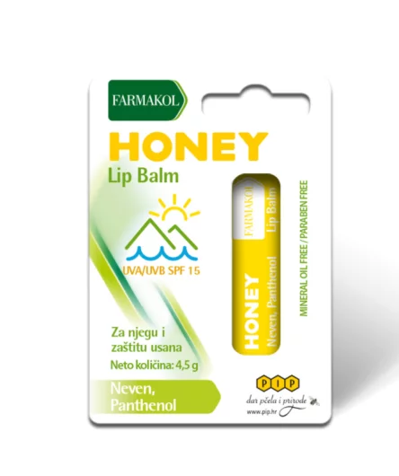 Farmakol Lip Balm balzam za usne ima zaštitno, umirujuće i regenerativno djelovanje zahvaljujući svojim prirodnim aktivnim sastojcima: medu, pantenolu i nevenu. Hrani i njeguje kožu usana, te štiti od vanjskih utjecaja. Hidratizira te osigurava zaštitu od sunca koristeći SPF 30 faktor koji osigurava kvalitetnu zaštitu od UVA i UVB zračenja.