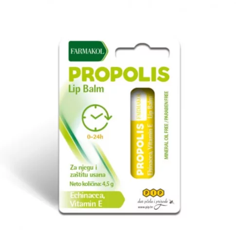Farmakol Lip Balm Propolis stik za usne smiruje i obnavlja oštećenu i ispucanu kožu usana.