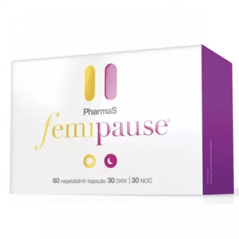 Femipause kapsule sadrže melatonin, vitamine B skupine, lan, livadnu djetelinu, valerijanu i kinesku anđeliku. Ova jedinstvena kombinacija prirodnih sastojaka koristi se za ublažavanje simptoma menopauze. Prednost ovog proizvoda je koncept 2u1; kapsule za DAN, i kapsule za NOĆ. Kapsule za Dan doprinose regulaciji hormona, smanjenju razdražljivosti, umora i iscrpljenosti. Kapsule za Noć djeluju na hormonsku ravnotežu i kvalitetu sna doprinoseći skraćenju vremena potrebnog za padanje u san.