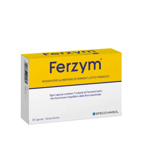 Ferzym je mikrobiotički dodatak prehrani koji sadrži bakterije mliječne kiseline, vitamine i biljna vlakna. Bakterije mliječne kiseline doprinose ravnoteži probavnog mikrobioma, najčešće narušenog primjenom antibiotskih terapija.