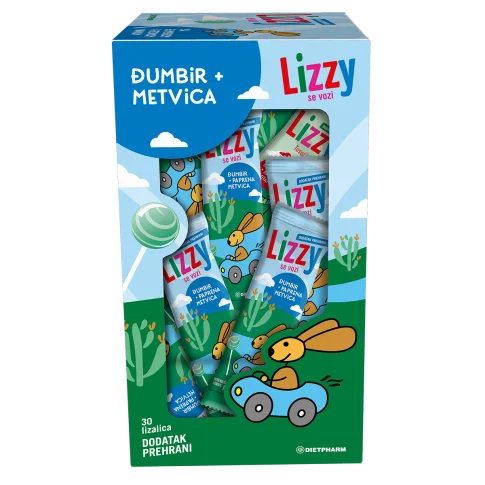 Dietpharm ˝Lizzy se vozi˝ lizalice dodatak su prehrani đumbirom i paprenom metvicom za djecu od navršene 4. godine. Lizalicu se preporuča uzeti pola sata prije putovanja.