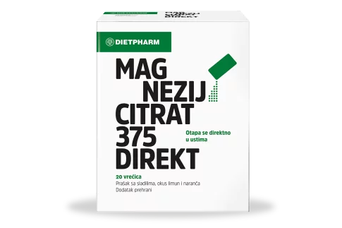 Magnezij Citrat 375 direkt prašak dodatak je prehrani s 375 mg magnezija iz magnezijevog citrata , što je 100% preporučenog unosa magnezija.