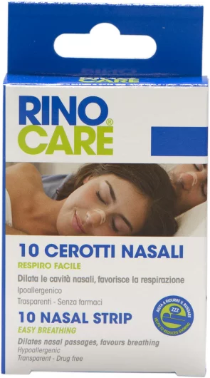 Rinocare flasteri za nos su pomoć pravilnom disanju, olakšavanju problema hrkanja. Opuštaju i šire dišne puteve te olakšavaju disanje kod alergija i prehlada. Ne sadrže lijekove niti druge štetne supstance. Ne nanositi na oštećenu kožu. Flasteri su namijenjeni odraslima i djeci starijoj od 5 godina nadalje.