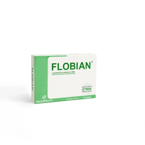 Flobian kapsule sadrži 60 mg liofilizirane kulture Lactobacillus plantarum 299v s 20 milijardi živih stanica dobrih bakterija. U borbi protiv nadutosti i plinova u trbuhu, Flobian djeluje direktno na uzrok problema, jer sprječava vezanje štetnih bakterija, kao i apsorpciju njihovih toksina preko stanica crijevnog epitela, i na taj način smanjuje nastajanje plinova u trbuhu.