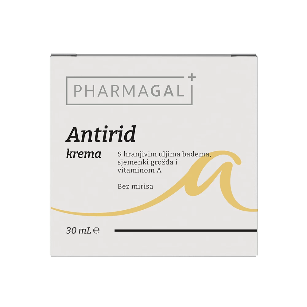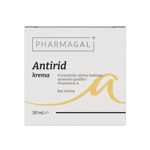 Pharmagal Antirid krema njega je koja sadrži retinol i ulje sjemenki grožđa, a namijenjena je borbi protiv bora i prijevremenog starenja kože. Za sve tipove kože.