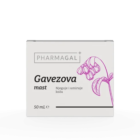 Pharmagal Gavezova mast njeguje i umiruje kožu. Gavezova mast potiče regeneraciju kože i sprječava njezino isušivanje. Sadrži i ekstrakt nevena koji dodatno hrani i umiruje nadraženu kožu.