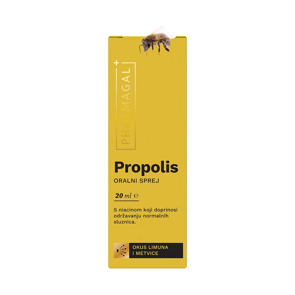 Pharmagal propolis sprej tekući je dodatak prehrani s propolisom i niacinom. Niacin doprinosi održavanju normalnih sluznica.