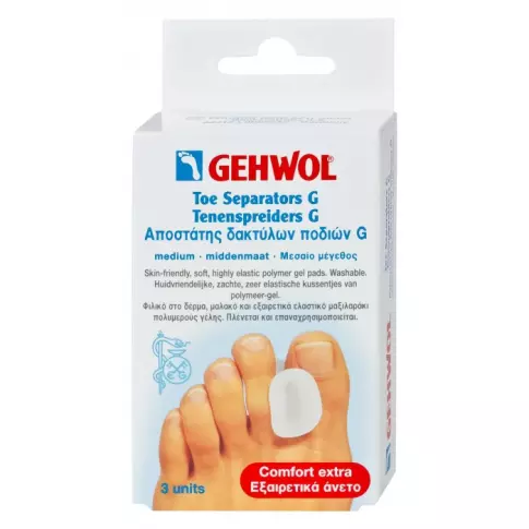 Gehwol Separator za palac sprječava pritisak na kurje oči između prstiju i razdvaja nožne prste. Odvaja nožni palac od susjednog prsta za vrijeme kretanja. Koristi se kod prekriženih prstiju, kod stisnutih prstiju, kod iskrivljene palčane kosti, odnosno čukljeva (Hallux Valgus) i nakon operacije čukljeva.