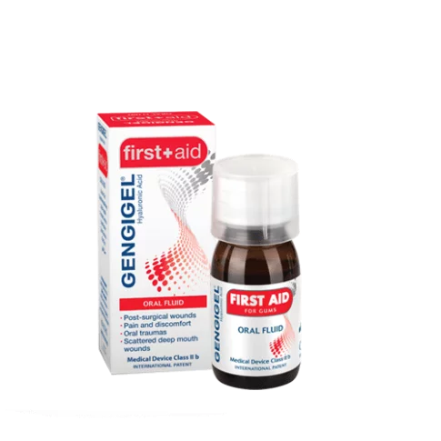 Gengigel first aid otopina s hijaluronskom kiselinom potiče cjelovitu obnovu tkiva, pospješuje zacjeljivanje u čitavoj usnoj šupljini nakon ozljeda, kirurških i stomatoloških zahvata, ugradnje implantata, vađenja zuba te struganja i poliranja površine korijena zuba.