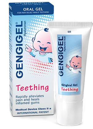 Gengigel Prvi zubići je oralni gel za bebe. Sadrži hijaluronsku kiselinu koja smiruje upalu desni i ublažava bol i oticanje prilikom nicanja zubi.