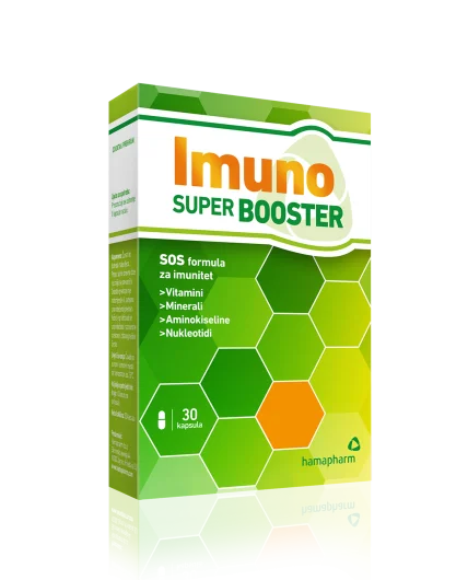 Hamapharm Imuno Super Booster kapsule sadrže SOS formulu za jačanje imuniteta: vitamini, minerali, aminokiseline, nukleotidi.