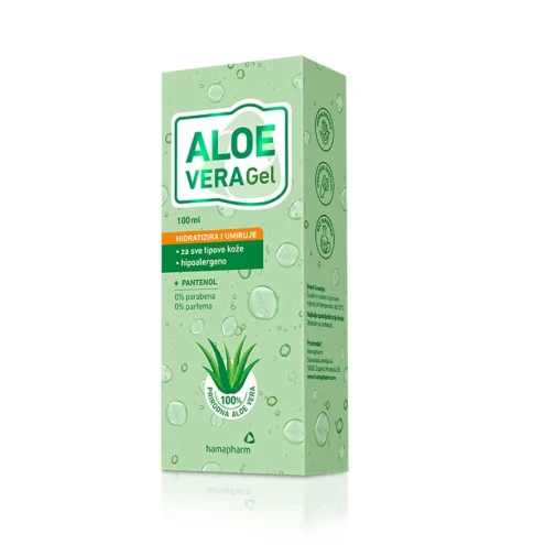 Gel od aloe vere sastoji se od 100% prirodne aloe vere (Aloe Barbadensis), obogaćene pantenolom, pružajući hidrataciju, umirenje i dubinsku njegu za sve tipove kože, od najmlađih do odraslih. Aloe vera gel pruža prirodnu zaštitu koži i potiče regeneraciju, posebno je pogodan za suhu, osjetljivu, crvenu i nadraženu kožu kod dojenčadi, djece i odraslih.