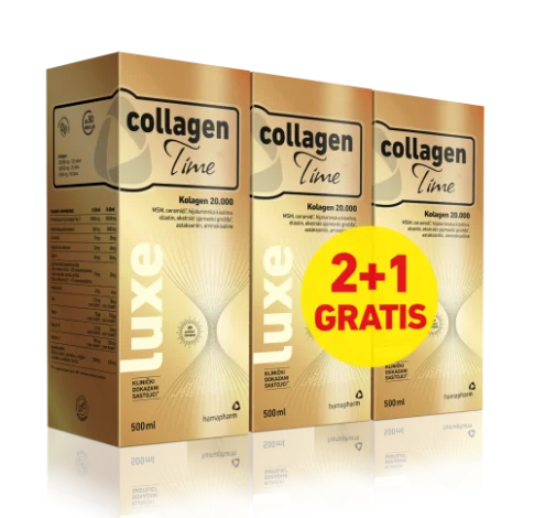 Hamapharm CollagenTime Luxe dubinski hrani i obnavlja sve slojeve kože, kose i noktiju. Uz najvišu dozu kolagena na tržištu (20.000 mg u 40 ml), UV protect complex i visoku dozu MSM-a (1.000 mg), CollagenTime Luxe poboljšava teksturu i elastičnost kože, smanjuje suhoću, smanjuje hiperpigmentacijske mrlje, snažno učvršćuje nokte i kosu te podržava zdravlje zglobova, mišića, ligamenata i kostiju.