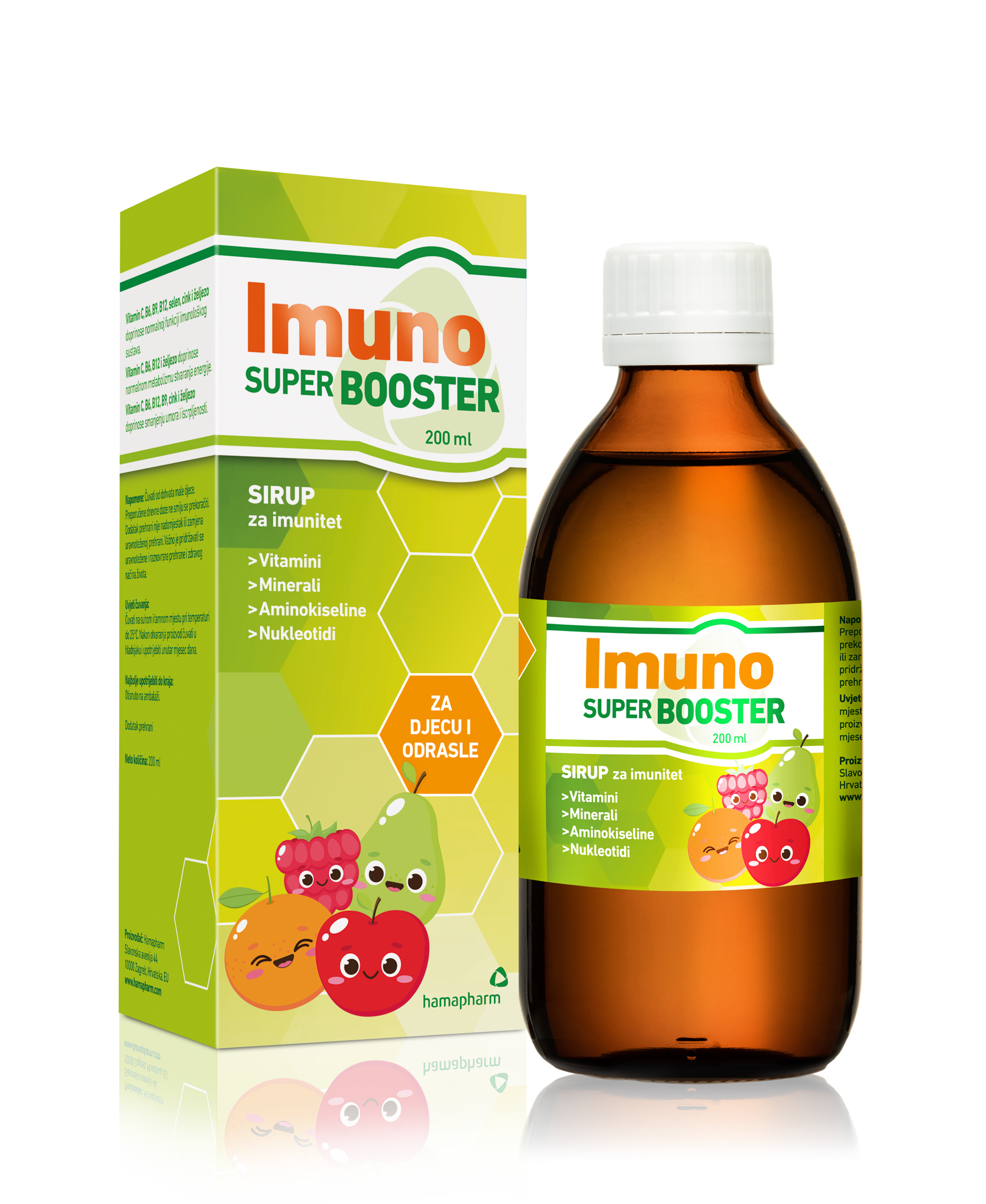 Hamapharm Imuno Super Booster sirup za imunitet za djecu sadrži sve potrebno za snažan imunitet najmlađih: vitamini, minerali, aminokiseline, nukleotidi.
