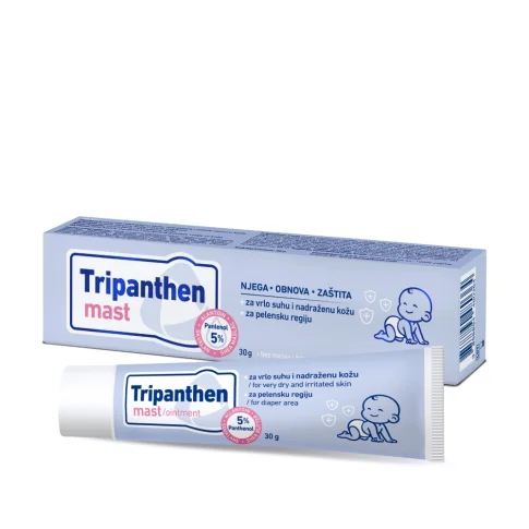 Tripanthen mast kombinira tri aktivna sastojka s 5% pantenola kako bi pružila trostruko djelovanje - njegu, obnovu i zaštitu kože.