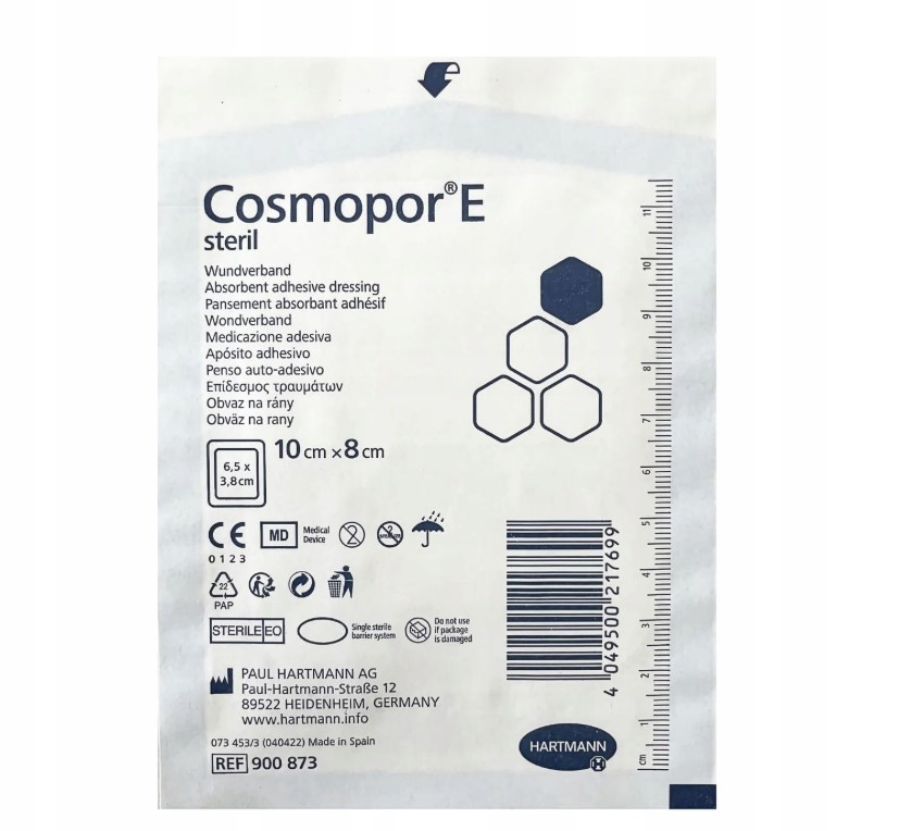 Sterilni flaster za zbrinjavanje rana izrađen od mekane samoljepljive podloge, netkanog materijala i hipoalergenoga poliakrilnog ljepljivog nanosa, s upijajućim jastučićem od čistog pamuka i mikroperforiranoga polietilenskog filma koji se ne lijepi na ranu.