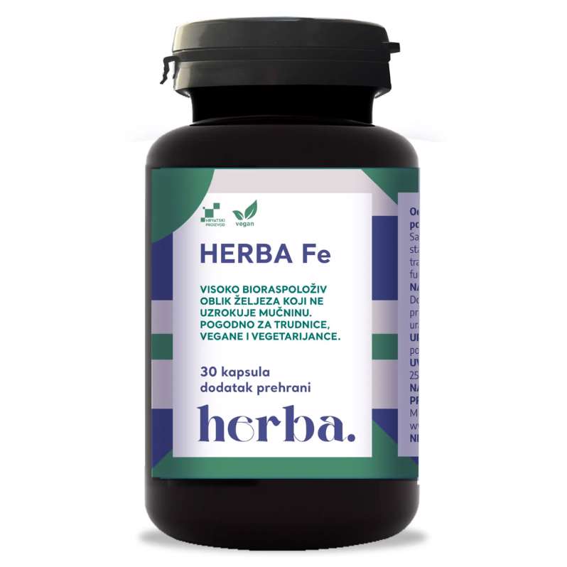 Herba Fe kapsule su dodatak prehrani koji pomaže kod povećanih potreba za mineralom željezom, smanjenju umora i iscrpljenosti kao posljedica anemije. Također pridonosi normalnom stvaranju crvenih krvnih stanica i hemoglobina.