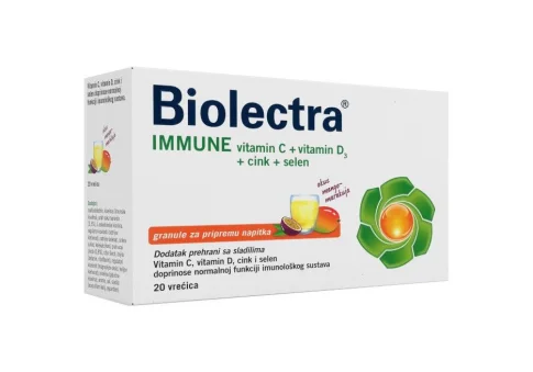 Biolectra Immun šumeće granule dodatak su prehrani s kombinacijom vitamina C, vitamina D, cinka i selena. Sinergističkom kombinacijom sastojaka u obliku šumećih granula djeluju na jačanje imuniteta.