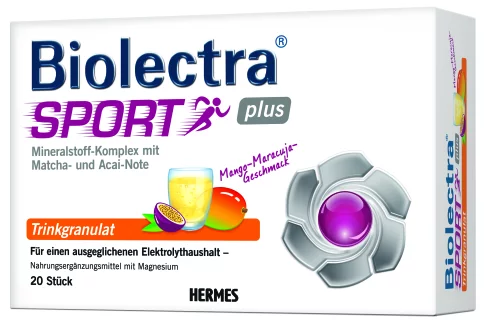 Biolectra Sport Plus šumeće granule dodatak su prehrani s kompleksom elektrolita, uz dodatak matcha i acai praha, sa šećerom i sladilima.