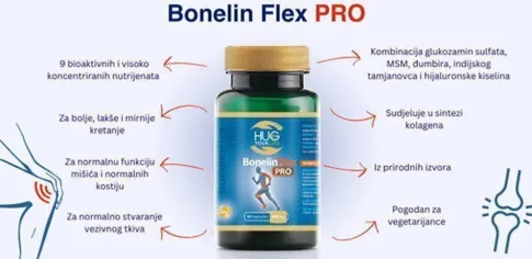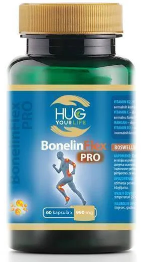 Hug Bonelin Flex PRO kapsule za zglobove inovativan su proizvod koji se preporučuje za održavanje normalne funkcije zglobova, hrskavice i kostiju, primjeren i za vegetarijance s obzirom da sadrži sastojke koji nisu životinjskog porijekla.