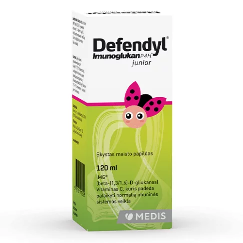 Imunoglukan Defendyl P4H junior sirup sadrži prirodni bioaktivni polisaharid Imunoglukan® (beta-(1,3/1,6)-D-glukan) izoliran iz gljive bukovače (Pleuratus ostreatus). Namijenjen je poboljšanju funkcije imunološkog sustava, smanjenju umora i iscrpljenosti, jačanju imuniteta i sprječavanje čestih infekcija. Doprinosi i normalnom metabolizmu stvaranja energije, funkcioniranju živčanog sustava i normalnoj psihološkoj funkciji. Preporučujemo ga za vrijeme pojačanih psiho-fizičkih napora (učenje, sportske aktivnosti), kao prevencija gripi i prehladi i ostalim virozama.