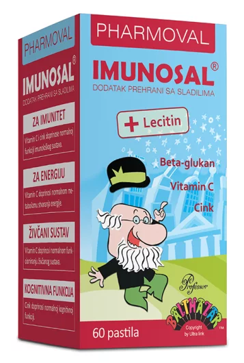 Imunosal pastile s beta-glukanom, cinkom, vitaminom C i lecitinom za djecu stariju od 3 godine i odrasle. Jačaju imunitet, smanjuju umor te pojačavaju koncentraciju i pamćenje.
