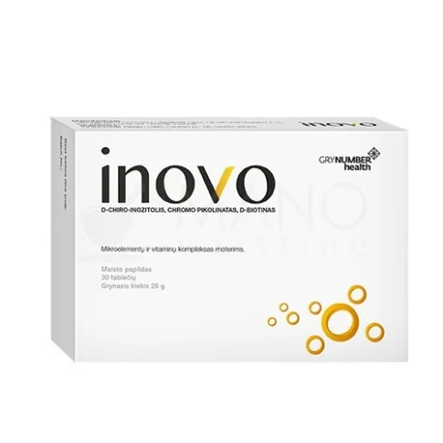 Inovo je dodatak prehrani jedinstvenog sastava koji u sebi sadrži tri komponente koje povoljno utječu na simptome PCOS-a: inozitol, biotin i krom.