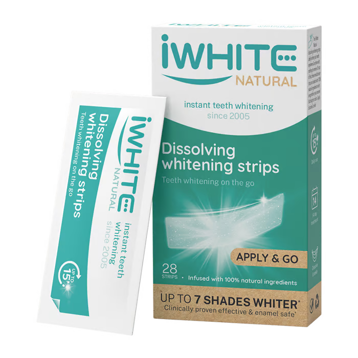 IWhite Natural samootapajuće trakice za izbjeljivanje sigurno izbjeljuju vaše zube, bilo gdje i bilo kada bez potrebe za uklanjanjem. Povrh toga, ove revolucionarne trake pune su prirodnih sastojaka koji su nježni za vašu caklinu, ali otporni na mrlje.