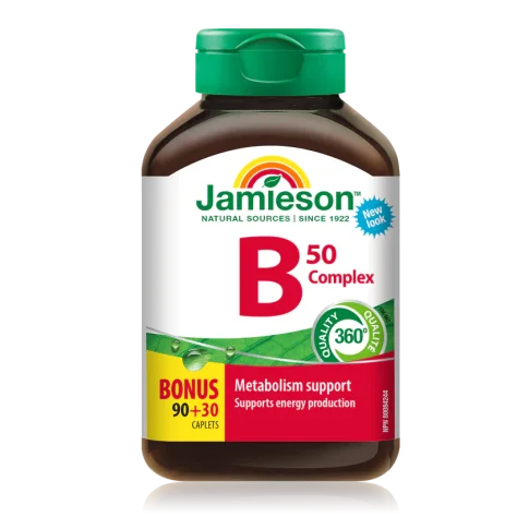 Jamieson B50 Complex tablete dodatak su prehrani s vitaminima B kompleksa koji pridonose smanjenju umora i iscrpljenosti te normalnom funkcioniranju živčanog sustava.