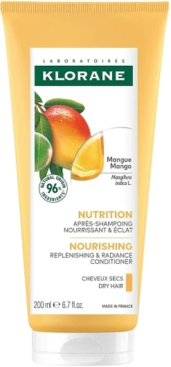 Klorane Mango balzam za suhu i oštećenu kosu razmrsuje i hrani suhu kosu, pruža joj zaštitu i ne čini je teškom. Kosa je hidrirana, blistava i podatna. Od 3. godine starosti.