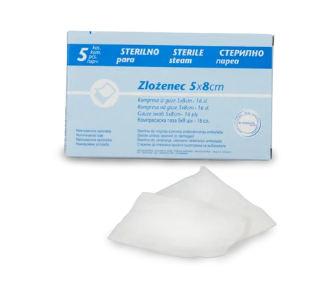 Sterilne komprese mekane su, složene, 16-slojne sterilne komprese od 100%-tnog pamuka koje služe za čišćenje rana, kao oblog za rane te za higijenske namjene. Svaka kompresa pakirana je zasebno.