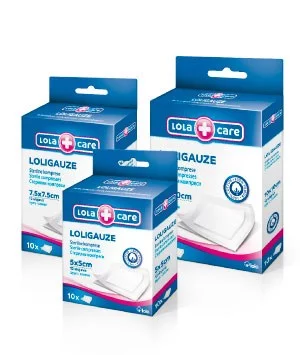 Lola Care Sterilne komprese je proizvod namijenjen za obradu vanjskih rana. To je bijela gaza složena i sterilno zapakirana. 12 slojeva. Dimenzije: 5 x 5 cm. Svaka kompresa je zasebno pakirana.